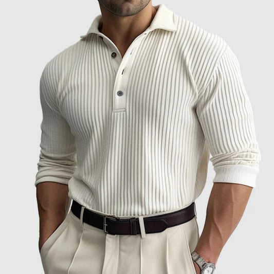 【24-hour shipping】Men's Solid Striped Lapel Long Sleeve Polo Shirt 11488498Z