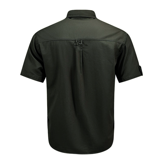 Men's Casual Loose Cotton Lapel Short-Sleeved Work Shirt 95101283M