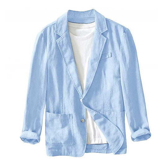 Men's Casual Cotton Linen Solid Color Lapel Long-Sleeved Blazer 97597244M