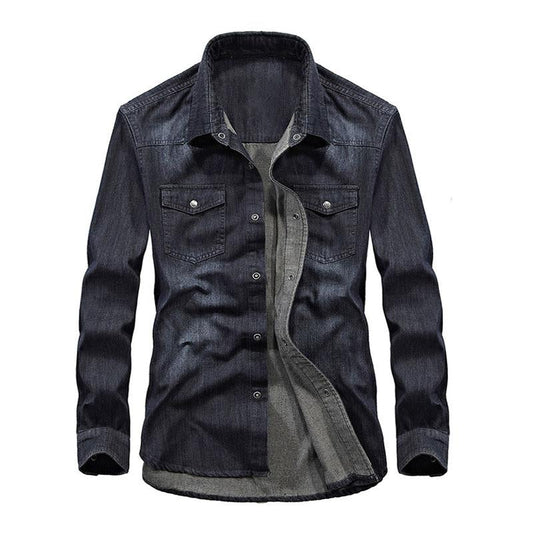 Men's Casual Lapel Cotton Long Sleeve Denim Shirt 05593165M