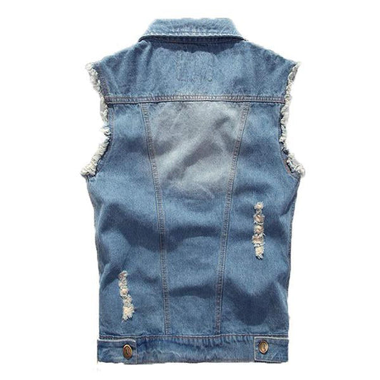 Men's Casual Distressed Frayed Denim Vest 14987136M