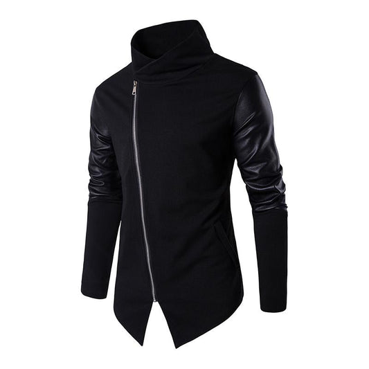 Men's Casual Stand Collar Slim Knit Leather Panel Jacket 05621291M