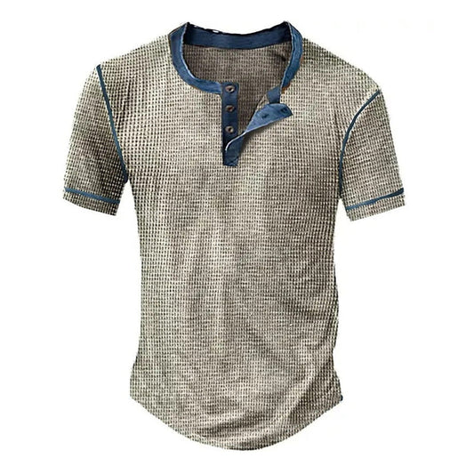 Men's Distressed Vintage Printed Henley T-Shirt 79727219X
