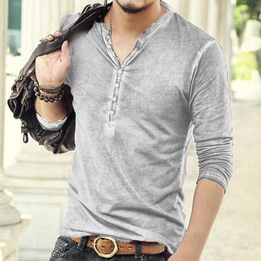 Men's Distressed Vintage Style V-neck Long Sleeve T-Shirt 70724462X