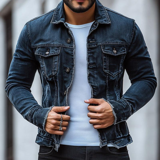 Men's Fashion Distressed Brushed Lapel Single Breasted Denim Casual Jacket 29680727Z