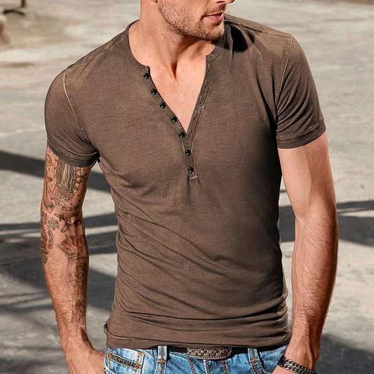 Men's Henley Crew Neck Short Sleeve Henley T-shirt 66405442X