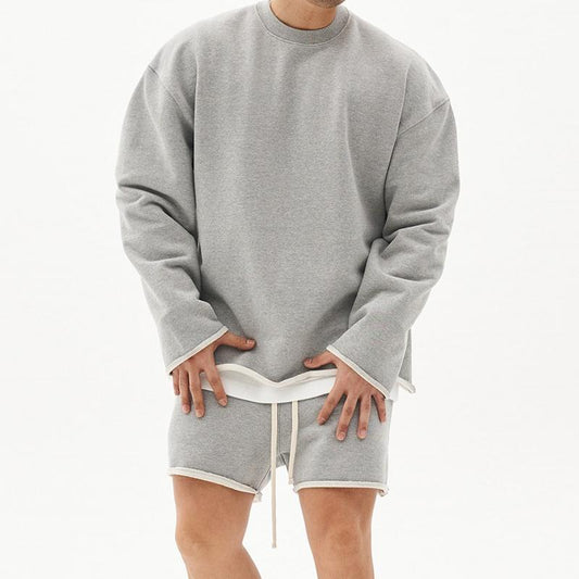 Men's Fashion Solid Color Loose Rolled Sweatshirt Shorts Set 80927036Z