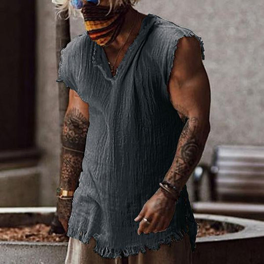 Men's Loose Casual Cotton Fray Tank Top 65850471M