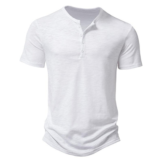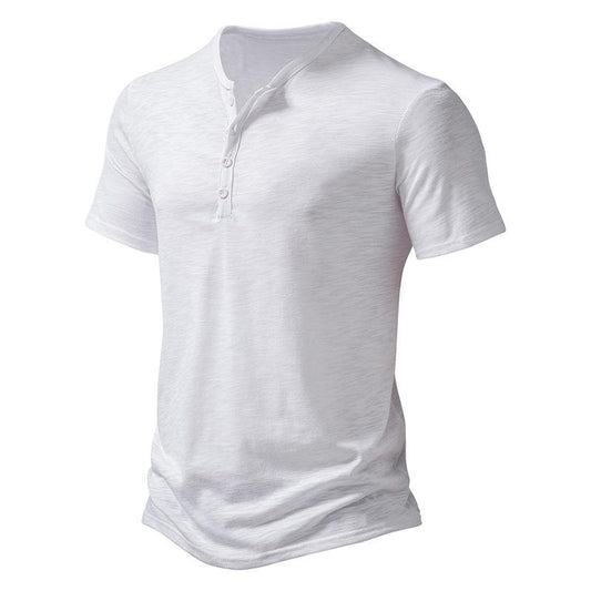 Men's Slub Cotton Henley Collar Short Sleeve T-shirt 84671002Z