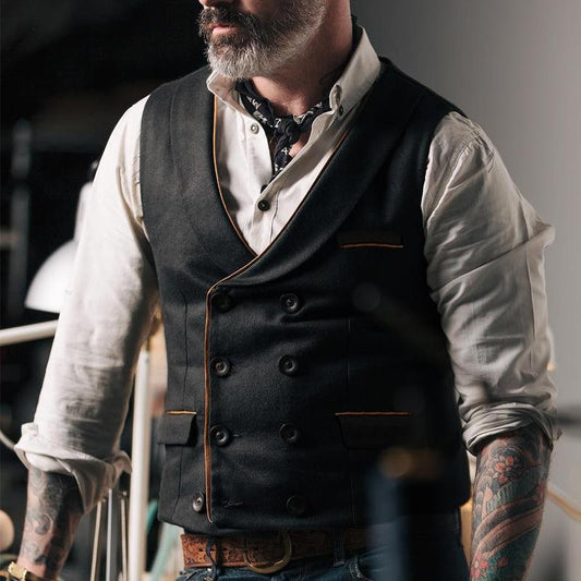 Men's Vintage Solid Color Lapel Suit Vest 02060709Y