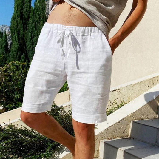 Men's Vintage Solid Linen Drawstring Shorts 53739890Y