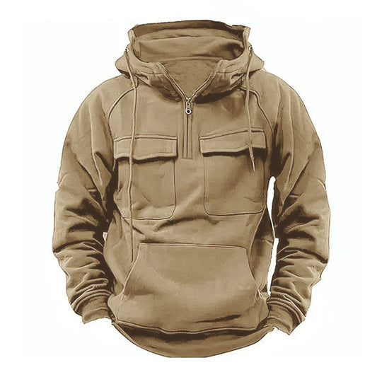 Men's Vintage Thickened Warm Multi-pocket Loose Long Sleeve Hoodie 30799636M