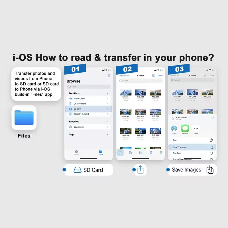No more juggling multiple gadgets. This card reader seamlessly connects to iPhones, iPads, and Android devices, ensuring smooth file transfers anytime, anywhere.