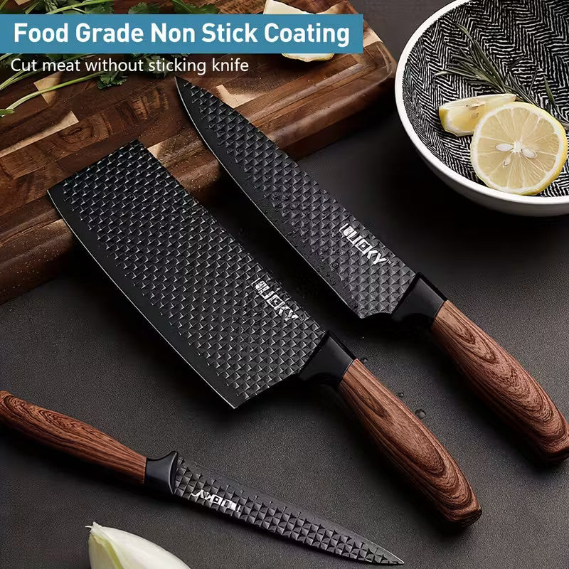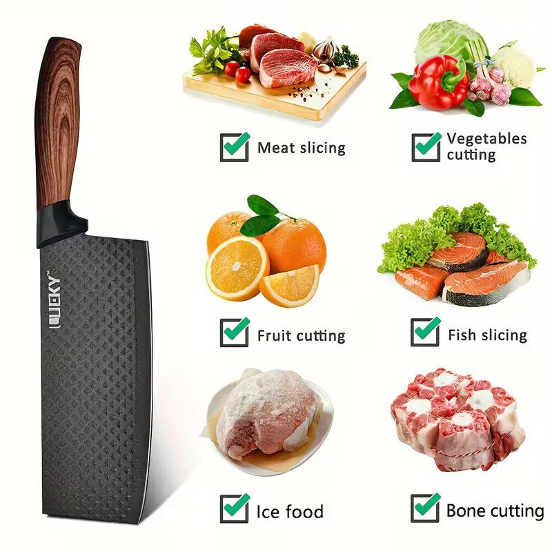 Experience the joy of cooking with well-balanced knives that reduce arm strain. Comfortable wooden handles provide a secure grip, ensuring safety and ease, even during long meal prep sessions.