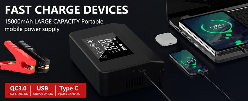★★★★★FYNNN - RoadRescue 4000A — Car Jump Starter + 150 PSI Tire Inflator (12V, 15,000 mAh, LED, Power Bank)